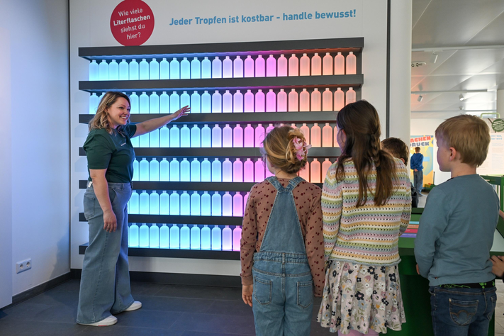 In der WasserWerkstatt erfahren Schülerinnen und Schüler der Jahrgangsstufen 3 bis 9 spielerisch, wo das münstersche Trinkwasser herkommt und wie sie verantwortungsbewusst mit der wertvollen Ressource umgehen. Mit interaktiven Exponaten und zahlreichen spielerischen Elementen im Innen- und Außenbereich beantwortet das Angebot spannende Fragen rund um die kostbare Ressource: Woher kommt das Trinkwasser in Münster? Wieviel Wasser ist nötig, um ein Handy herzustellen? Welche Auswirkungen hat Trockenheit auf die Trinkwassergewinnung? In direkter Nachbarschaft zum Wasserwerk Hornheide erleben Besucherinnen und Besucher hautnah, wieviel Technik und Sorgfalt nötig sind, bis aus Wasser Trinkwasser wird.
